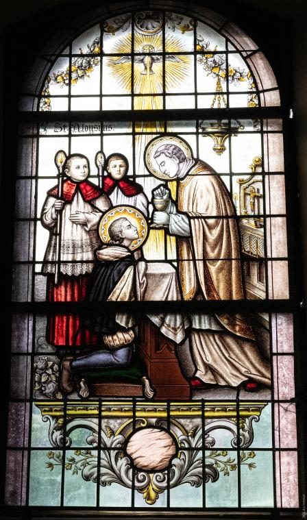 Über dem Ganzen, in halber Höhe des Turms , ein breites rundes Ochsenauge aus braunem Sandstein , warscheinlich von 1695.An der Westseite des Turms ein alter Stein mit JHS-Monogramm. Im Stichbogen der Sakristeitür die Jahreszahl 1695.
